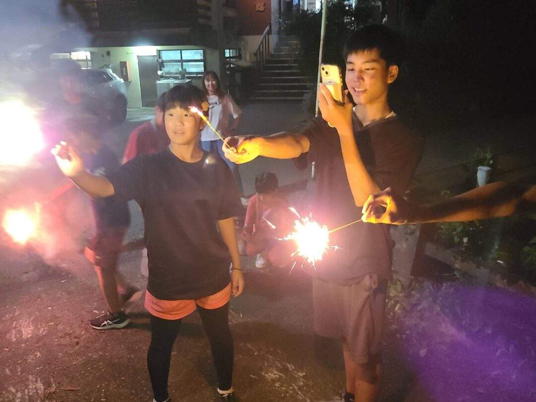2つのお楽しみ会を予定していましたが、時間が押してしまっていたため、みんなで花火を楽しみました🎆