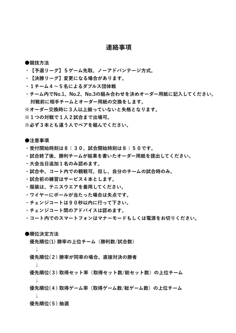 3/16(日)にマリンブルーで行われるレディースチームダブルス大会の仮ドローを発表します。