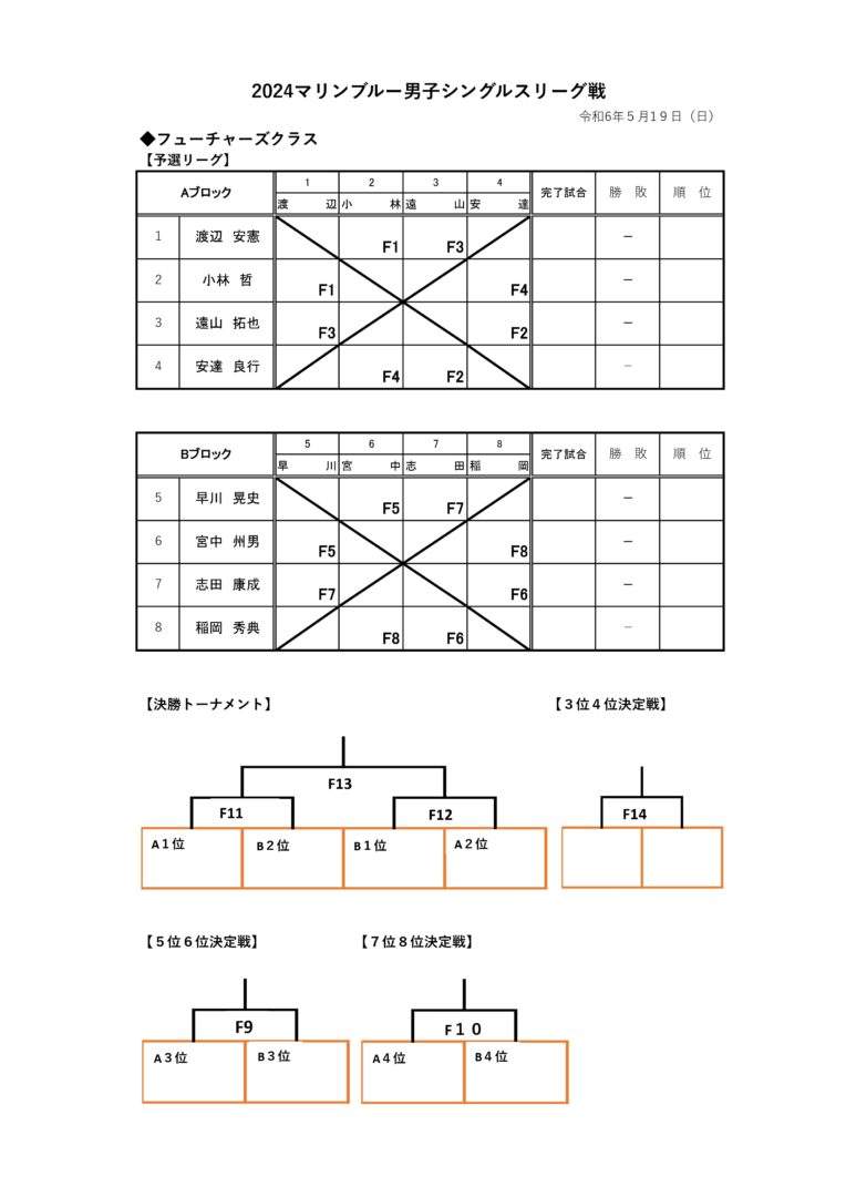 5/19(日)に開催します、男子シングルスリーグ戦の
