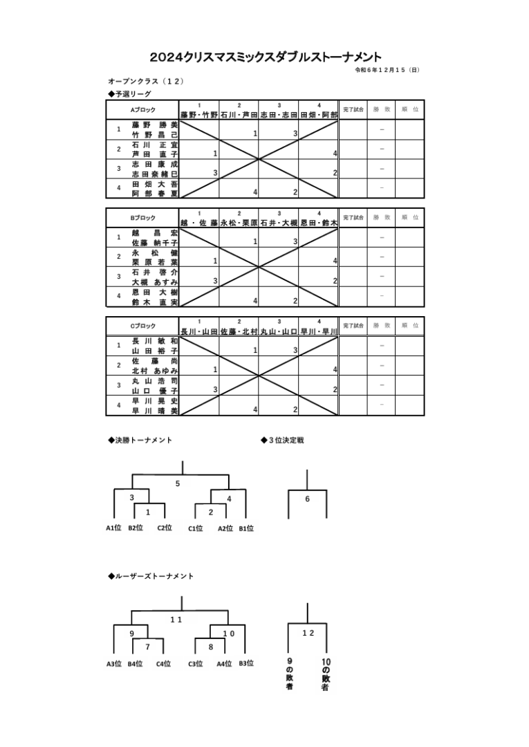 【仮ドロー】2024クリスマスミックスダブルストーナメント