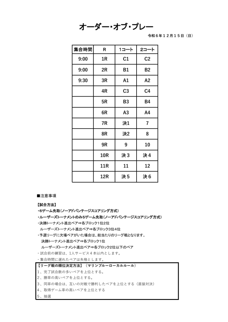 12/15(日)に開催されます、2024クリスマスミックスダブルストーナメントの