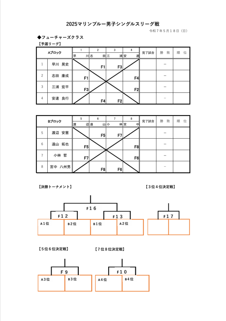 【仮ドロー】5/18 2025マリンブルー男子シングルスリーグ戦