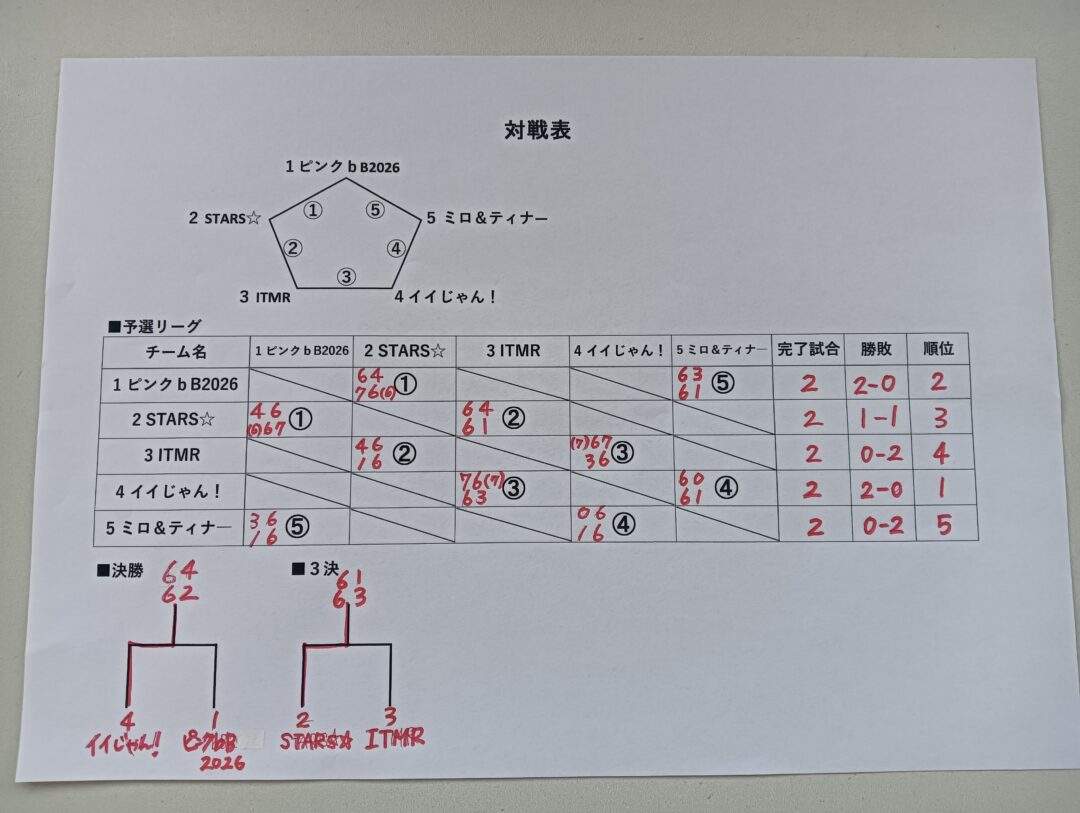 3/15(日)に行われましたレディースチームダブルス大会の結果です。