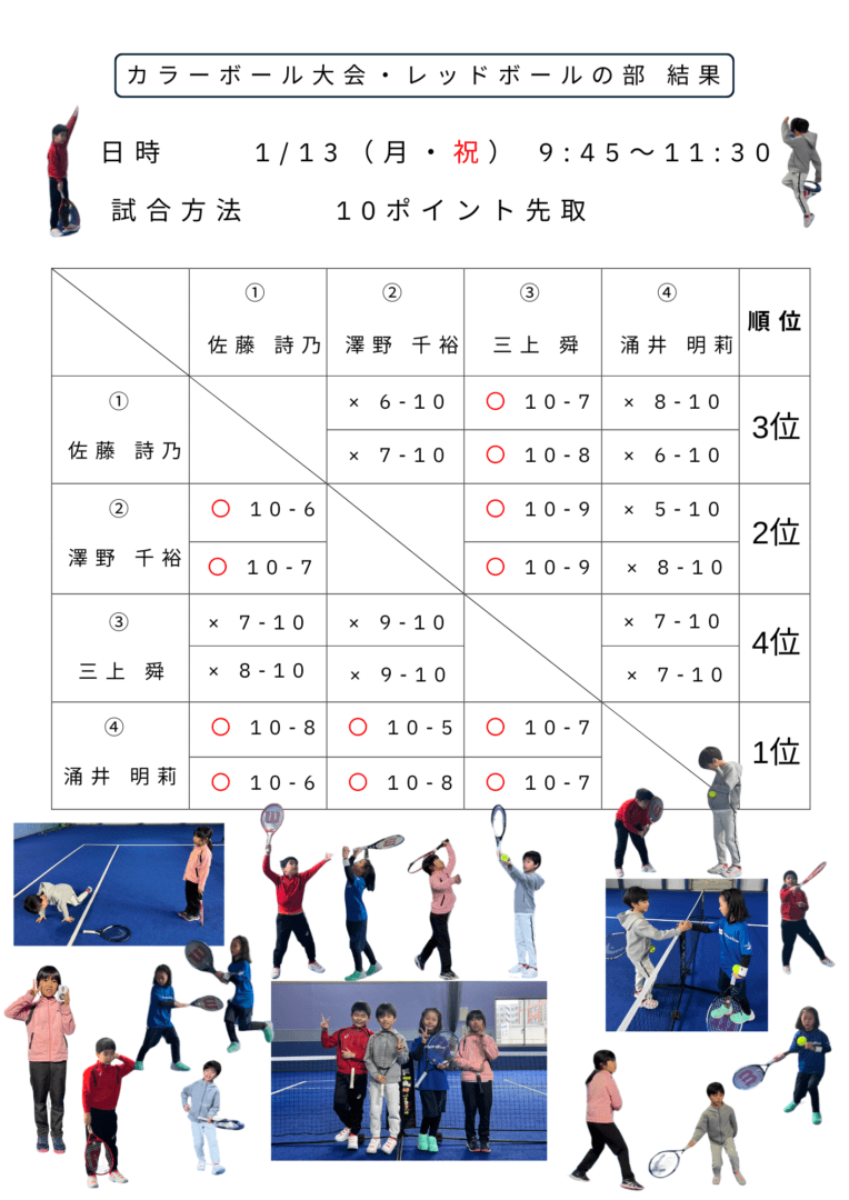 2月24日(月・祝)レッドボールの部、オレンジボールの部